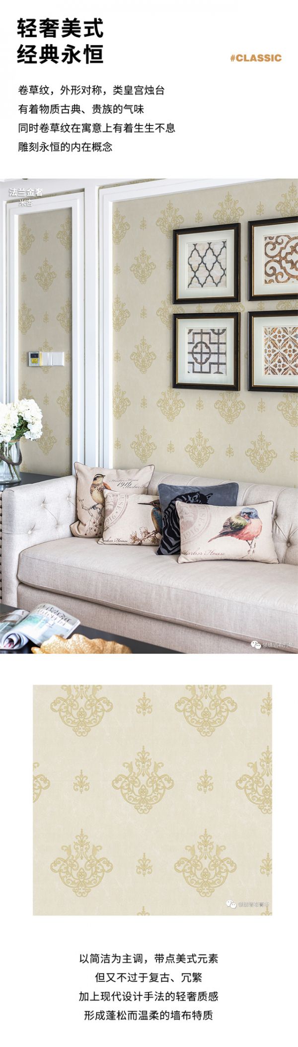 【领绣·菁华】化繁为简的轻奢美式墙布,体验时光的永恒!