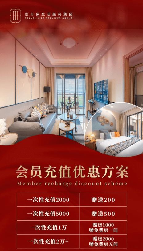 目前,侣行家生活服务集团旗下公寓酒店门店,即将迎来开业第三个周年,在公司大力支持和员工的努力下,得到了客户以及市场的认可;现为了回馈客户,以感谢开业三年以来一直的支持,酒店升级服务模式,实现增值空间,推出门店会员充值活动: