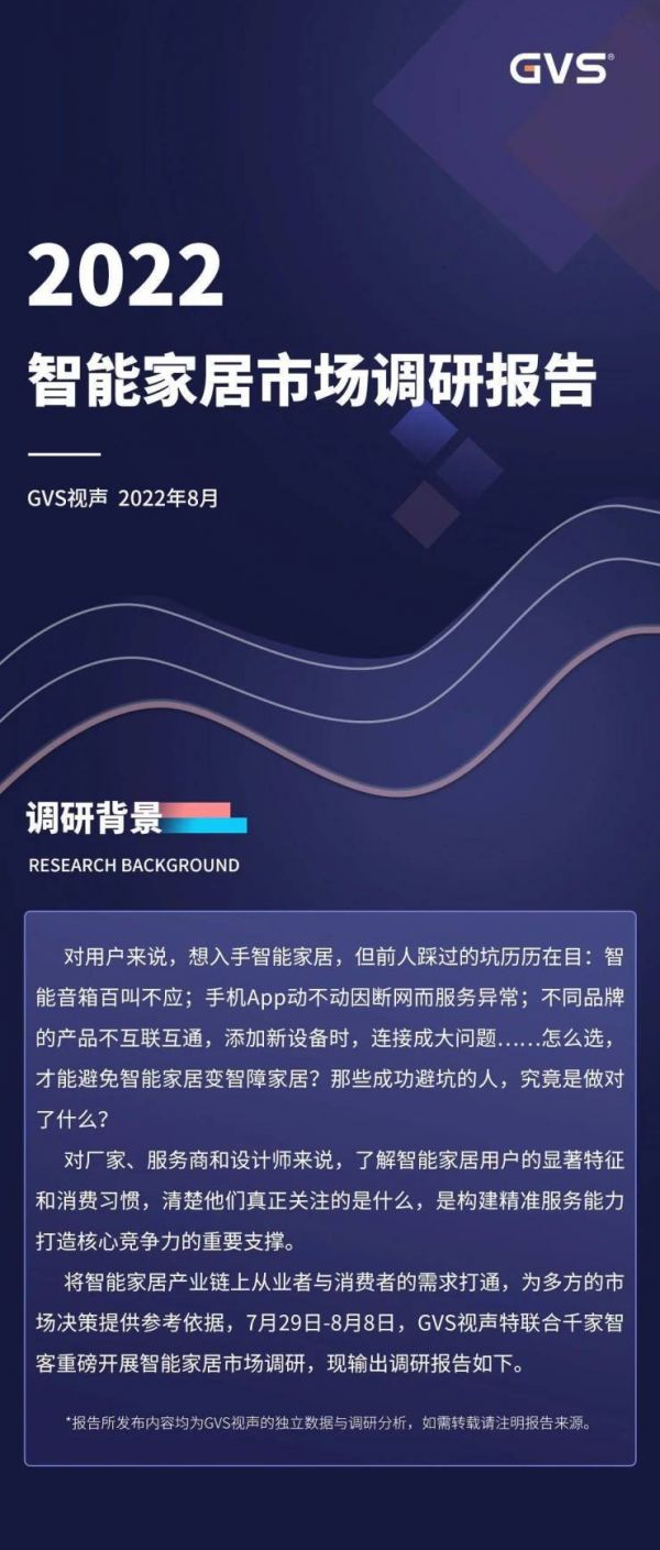 将智能家居产业链上从业者与消费者的需求打通,为多方的市场决策提供参考依据,7月29日-8月8日,GVS视声特联合千家智客重磅开展智能家居市场调研,现输出调研报告如下。