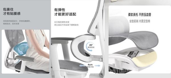 另外,e2还采用了新型弹性面料,长行程的弹性支撑,用以适应不同坐姿下的腰椎承压。