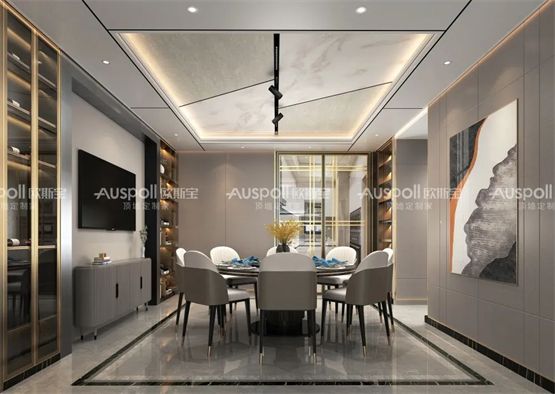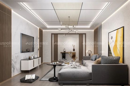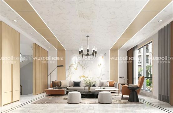 欧斯宝极简定制大板-蜂窝板有隔音降噪、防火防潮,不易弯折、变形等特点。在色彩、样式上和室内装修相称,再加上暖色灯光的烘托,立马就让家里变得格调满满。