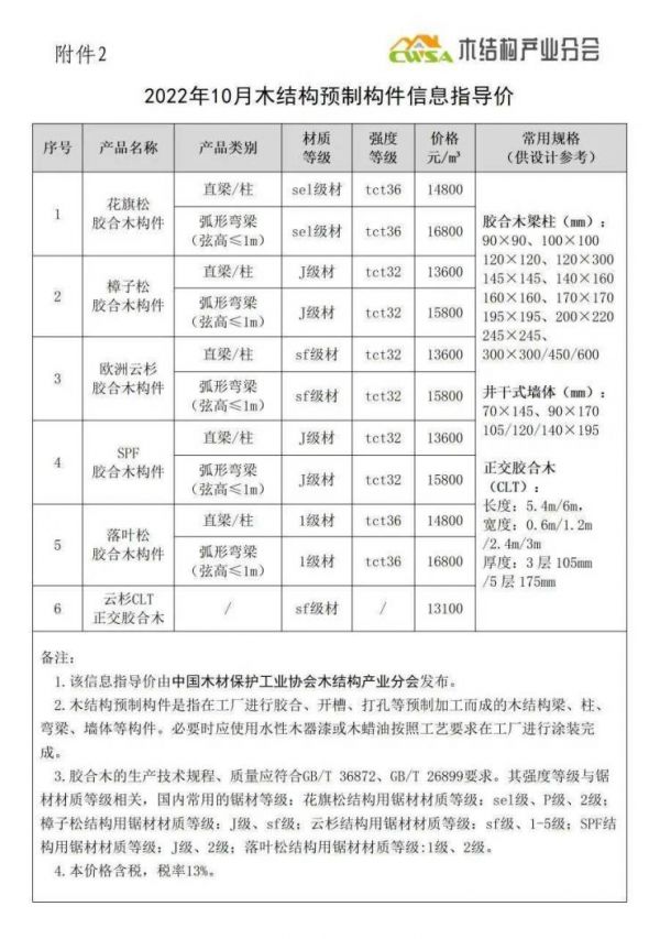 2022年10月木竹材料信息指导价发布