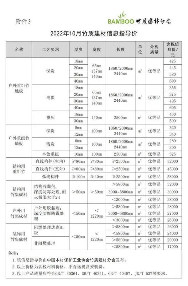 门窗快讯|2022年3月竹质建材信息价发布