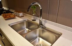水槽的深度至少要大于450px,单水槽的长度一般为1500px,双水槽则在70-2250px之间;领尚橱柜的个性化定制服务。同样会结合大家的厨房空间大小,选择搭配不同尺寸的单双水槽