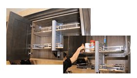 除了可定制柜体尺寸之外,还配备智能吊柜升降系统遥控、语音、手机APP多种操控方式,让吊柜自由升降让你下厨取物更便捷!