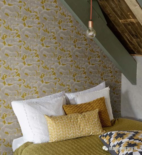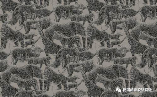 创新的将亮光和哑光完美结合,带有金属质感的基底与面层叠加的亚麻纹理相互映衬,使得这些动物元素在视觉上具有超强的三维立体效果。
