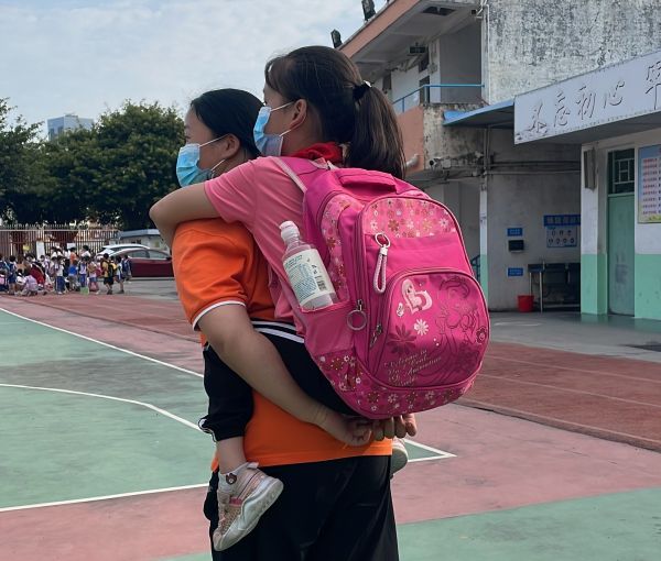 背着孩子去上学,慢慢融入社会