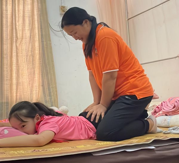 没有治愈的可能,吴姐就把孩子带回家,每天坚持做复健,在复健过程中,吴姐慢慢学会了按摩手法,就自己每天都在家里给曦曦按摩。