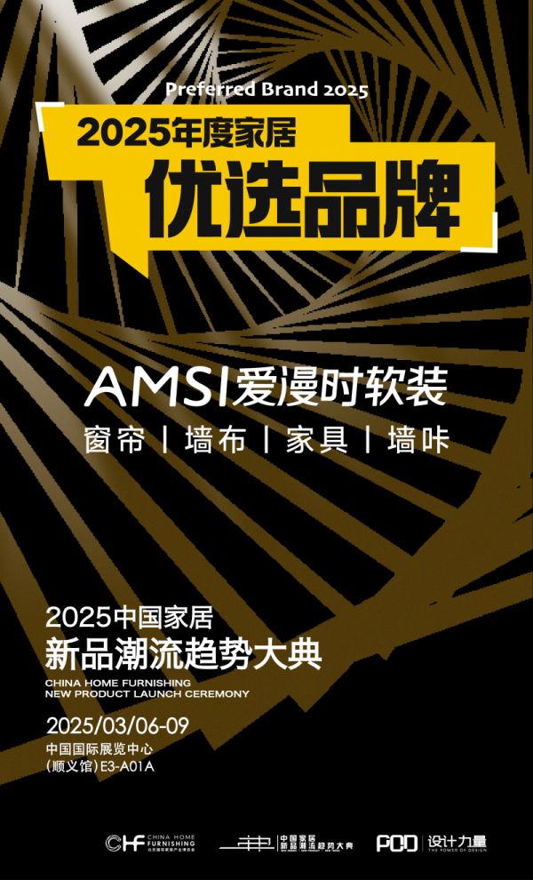 凭借深厚的企业底蕴、强劲的综合实力,以及在产品材质、工艺、设计理念、使用体验等方面的卓越表现,爱漫时荣耀入选《2025年度家居超级新品》,并将携新品睡眠窗帘在“2025中国家居新品潮流趋势大典”上闪耀亮相。新品凝聚了爱漫时研发团队的智慧与心血,融合了最新的设计理念、前沿的工艺技术以及高品质的材料,必将为家居软装行业带来全新的灵感与风尚。届时,爱漫时将与全体家居人共同见证超级新品的独特魅力,一同开启家居软装的全新潮流篇章。