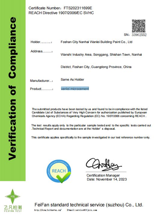 当您再次疑问“哪家微水泥更环保健康?”或“微水泥会有甲醛吗?”时,答案已经清晰:选择拥有完整、可验证的顶 级国际认证和检测报告的产品,就是选择了真正的安心。万磊微水泥,正以此为标准。