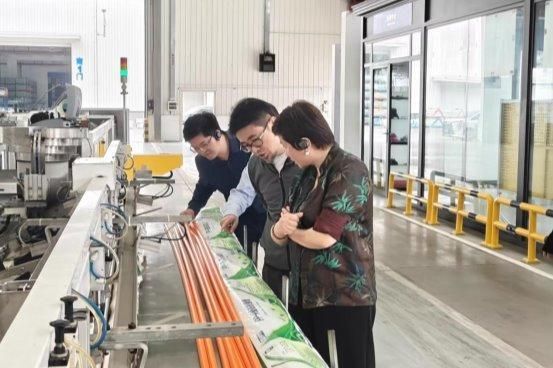 来访团队一行先后参观了日丰智能化生产车间、研发检测中心及智能仓储系统。从原材料投放到管材挤出、管件注塑,再到自动化包装与智能分拣,日丰全流程实现了高度的自动化与信息化融合。在研发检测中心,来访嘉宾深入了解了日丰在产品质量管控与技术创新保障方面的严苛标准与系统能力。日丰在智能制造、精益生产及全流程品控管理上的领先实践,充分展现了国家级制造业单项冠军企业的硬核实力。